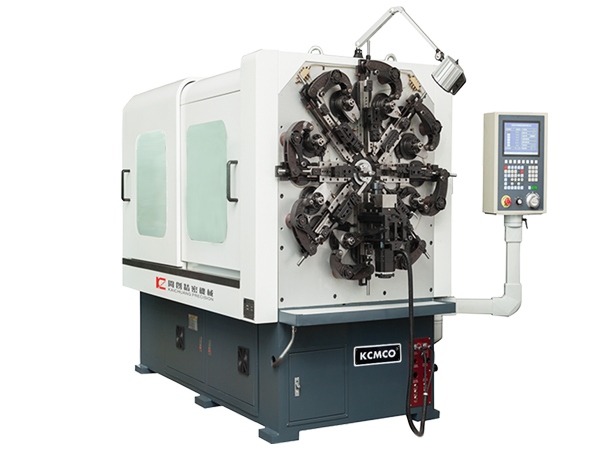 開創(chuàng)KCT-0535WZ五軸數(shù)控萬能彈簧轉線成形機采用臺灣(益圖)控制系統(tǒng)、引用日本三洋伺服電機和高精密軸承等構成,該機型一共有五軸,分別為凸輪軸、送線軸、轉芯軸、轉線軸和卷曲軸,系統(tǒng)透過CNC程式碼,分別對送線與凸輪傳動系統(tǒng)做同步控制,可達到24小時精確運轉。此外,由于我司彈簧機設備均采用高精度的伺服馬達及電腦控制,因此結合伺服轉線一軸和卷曲一軸,即可輕松地生產尺寸精密且角度復雜的彈簧產品。